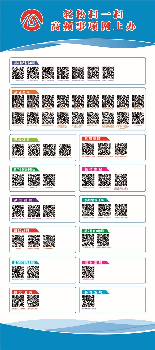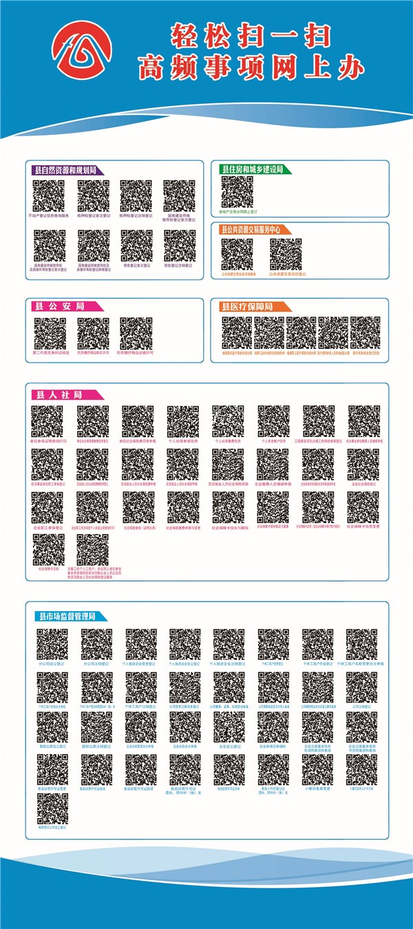 編制全縣133項高頻服務(wù)事項二維碼集中展示,一碼一事,手機掃一掃,辦事指南、申請材料、辦理流程、辦事咨詢?nèi)?。全面了解辦事流程、事項材料及辦理時限,減少企業(yè)群眾多跑路多咨詢。
