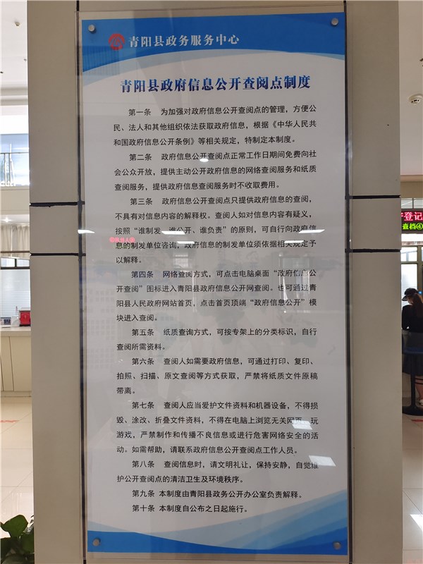 設(shè)置政府信息公開查詢點,制度上墻,配備查詢終端,擺放國務(wù)院、省、市、縣級政府公報,實現(xiàn)政府信息線上、線下均可查詢獲取。