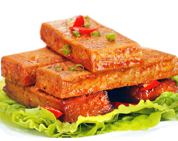 陵陽(yáng)豆腐干,是青陽(yáng)縣傳統(tǒng)小吃,歷史悠久。制作工藝是:精選優(yōu)質(zhì)黃豆,經(jīng)過(guò)泡發(fā)、濾漿、成型、鹵制等十幾道工序精制而成。陵陽(yáng)豆腐干色澤烏黑光亮,醬香濃郁,口味鮮美,咸淡適宜,質(zhì)地板而不結(jié),厚薄均勻。