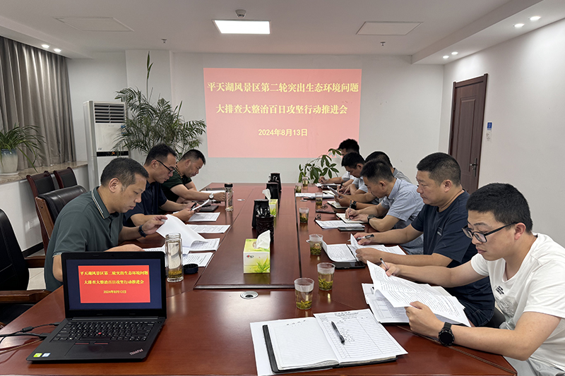 2024年8月13日下午,平天湖風(fēng)景區(qū)召開第二輪突出生態(tài)環(huán)境問題大排查大整治百日攻堅(jiān)行動(dòng)推進(jìn)會(huì)。區(qū)黨工委委員、管委會(huì)副主任鮑楠出席會(huì)議并講話,管委會(huì)相關(guān)處室主要負(fù)責(zé)人參加會(huì)議。
