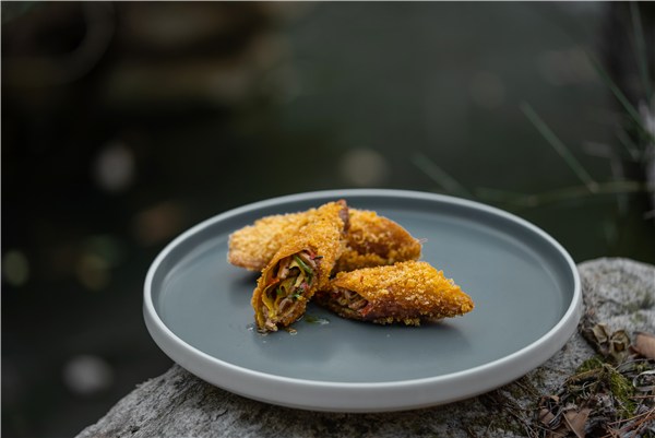 相傳,陶淵明曾四次到訪池州,在此地“渴了吃桃,餓了吃菊”。后人為致敬他,特將陶公摯愛的菊花與青紅椒、蛋皮、里脊肉、香菇等食材卷成卷狀,以如意卷相稱。其味濃郁,唇齒留香。