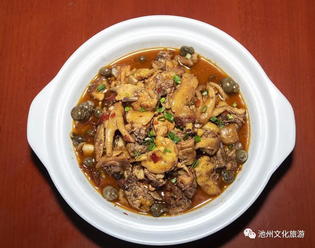 石臺(tái)螺螄雞的正確叫法應(yīng)該是螺螄燒雞,并不是說雞像螺螄形狀,而是雞與螺螄的混合烹制而成。螺螄是水中螺屬軟體動(dòng)物,螺殼呈圓錐形,為深褐色。石臺(tái)秋浦河中的螺螄不同于其他山溪的螺螄,清澈的水質(zhì)孕育出特有的天生麗質(zhì),不帶一絲泥土味,外觀透著一股鮮靈勁,故有“秋浦螺,抵只鵝”之說。與秋浦河螺螄一樣,土雞也是地道的風(fēng)物。
