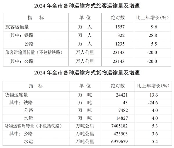 年末全市高速公路里程327公里,一級公路里程272公里,鐵路營業(yè)里程244公里,其中高速鐵路營業(yè)里程105公里。