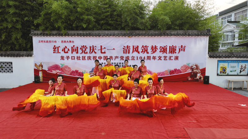 6月28日晚,青陽縣蓉城鎮(zhèn)龍子口社區(qū)舉辦“紅心向黨慶七一清風(fēng)筑夢(mèng)頌廉聲”文藝匯演。 通訊員 楊亮 攝