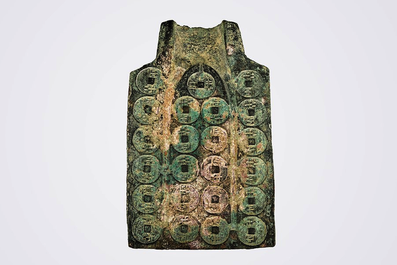 秦半兩錢是圓形方孔錢,一枚重半兩(十二銖),約為現(xiàn)在的8克。錢文“半兩”二字為小篆體,由秦朝丞相李斯親筆題寫。這種圓形方孔錢蘊(yùn)含了中國(guó)古代“天圓地方”的宇宙觀。因便于攜帶、流通和儲(chǔ)藏,此后2000多年,我國(guó)古代錢幣基本都沿襲了這種造型。