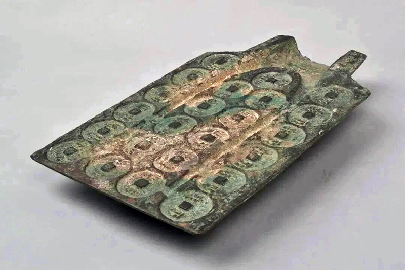 這兩件寶貝長(zhǎng)什么樣?它們?cè)煨鸵?guī)整,紋飾精美,整體由銅錫鉛合金鑄成,呈長(zhǎng)方形,上寬下窄,分別排列著23個(gè)、15個(gè)錢槽,其錢槽、錢文和提耳基本一致,至今保存完好。
