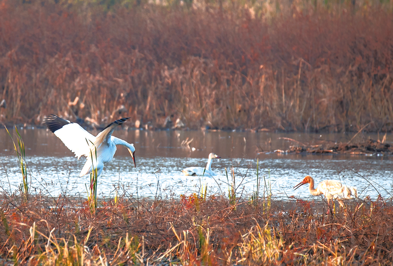 白鶴為鳥類中的古老物種,據(jù)考證已在地球上生活了近6000萬年,因此被譽(yù)為鳥類“活化石”。由于在遷徙途中常常因惡劣天氣致其傷亡,加之棲息地被破壞或改變等因素影響,導(dǎo)致種群數(shù)量減少。目前全球范圍內(nèi)白鶴數(shù)量不到7000只,已被世界自然保護(hù)聯(lián)盟列入瀕危物種紅色名錄,并定級(jí)為極危物種。