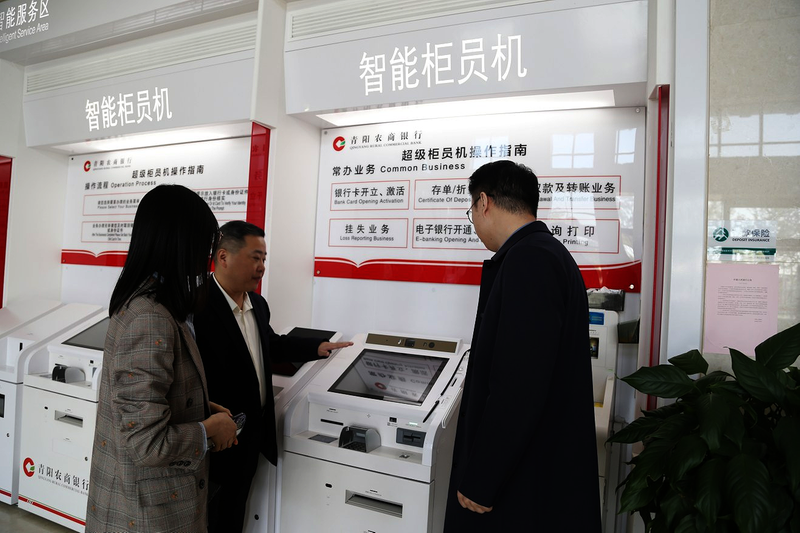 走進(jìn)青陽農(nóng)商行的一家網(wǎng)點,筆者發(fā)現(xiàn),在智能柜員機上,不僅能辦理存取款、轉(zhuǎn)賬等常規(guī)金融業(yè)務(wù),還能輕松辦理社保、醫(yī)保、公積金、不動產(chǎn)查詢等62項高頻政務(wù)服務(wù)。這正是政銀合作帶來的新變化。