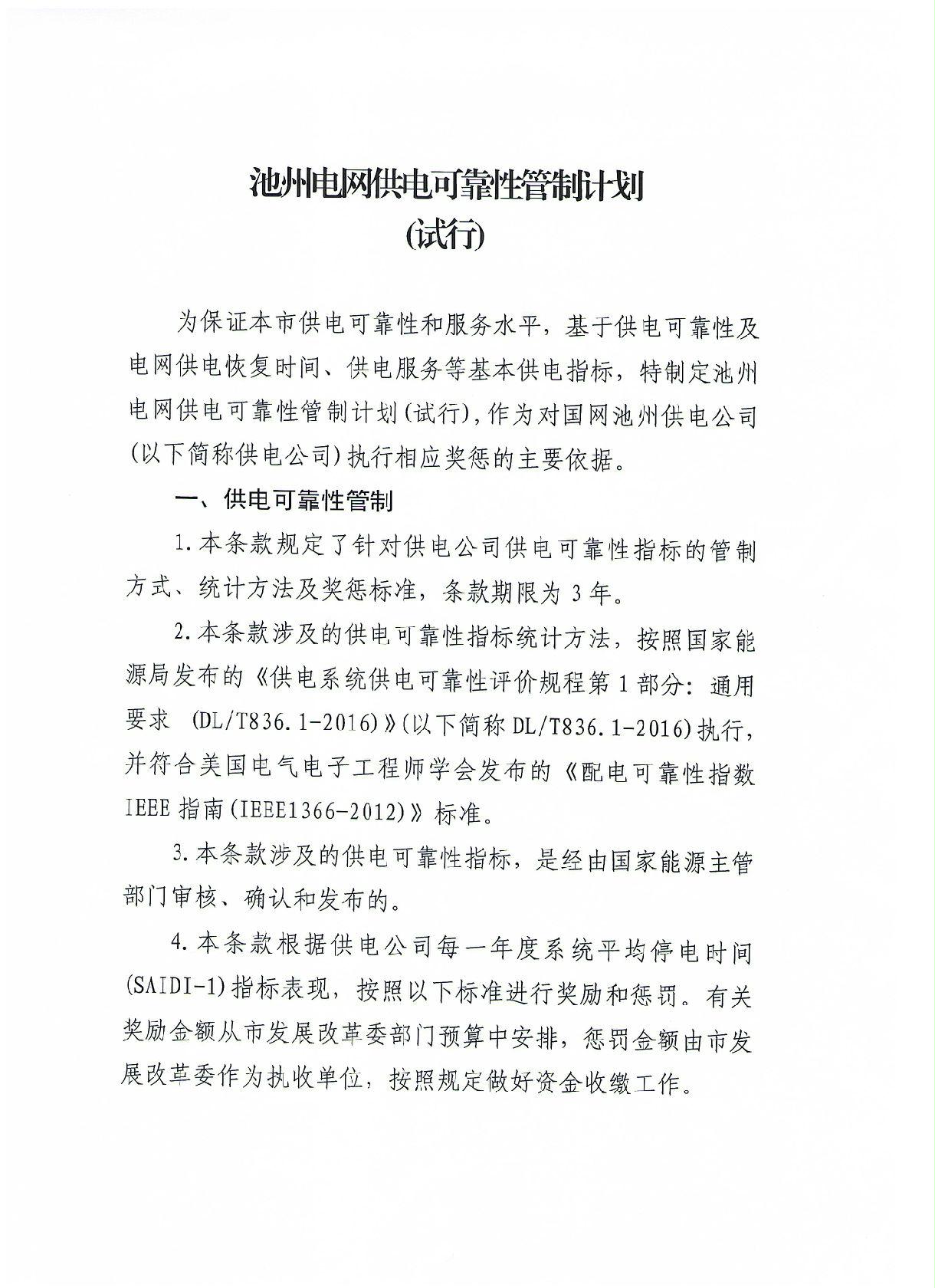 池州市發(fā)改委《關于印發(fā)池州電網(wǎng)供電可靠性管制計劃(試行)的通知》