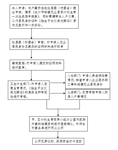 池州市城鎮(zhèn)無業(yè)居民計(jì)劃生育一次性獎(jiǎng)勵(lì)流程圖