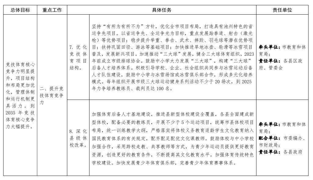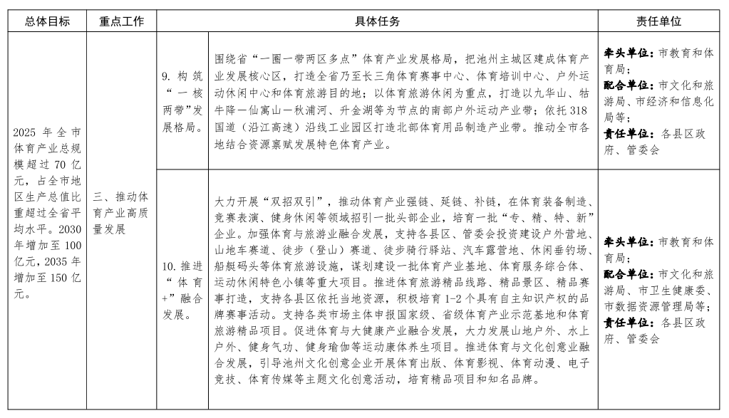 | 標(biāo)題: | 池州市人民政府辦公室關(guān)于印發(fā)貫徹落實(shí)安徽省體育強(qiáng)省建設(shè)方案重點(diǎn)工作任務(wù)責(zé)任清單的通知 | 文號(hào): | 池政辦秘〔2021〕110號(hào) |