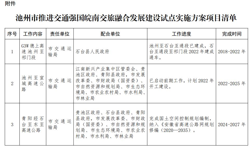 附件:池州市推進交通強國皖南交旅融合發(fā)展建設(shè)試點實施方案項目清單