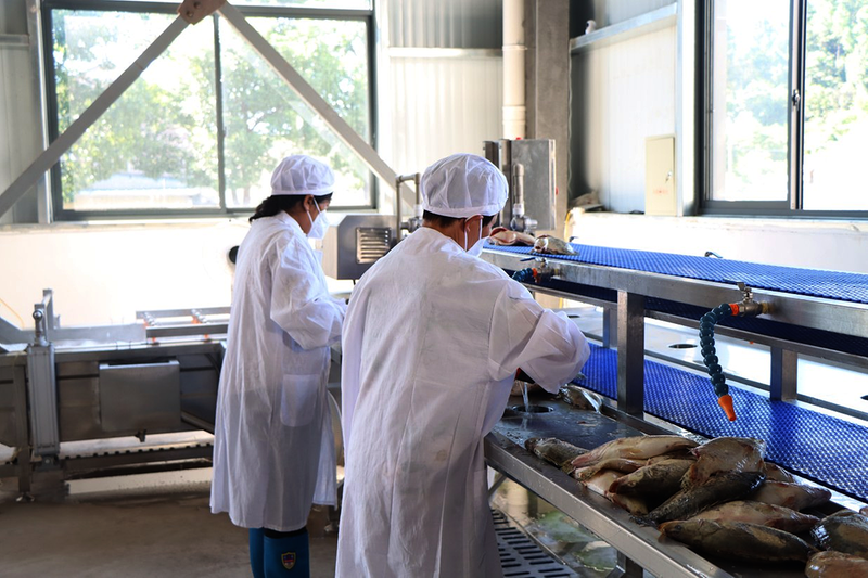 涓橋鎮(zhèn)聯(lián)合村鱖魚加工廠生產(chǎn)車間。通訊員 孫夢晨 攝